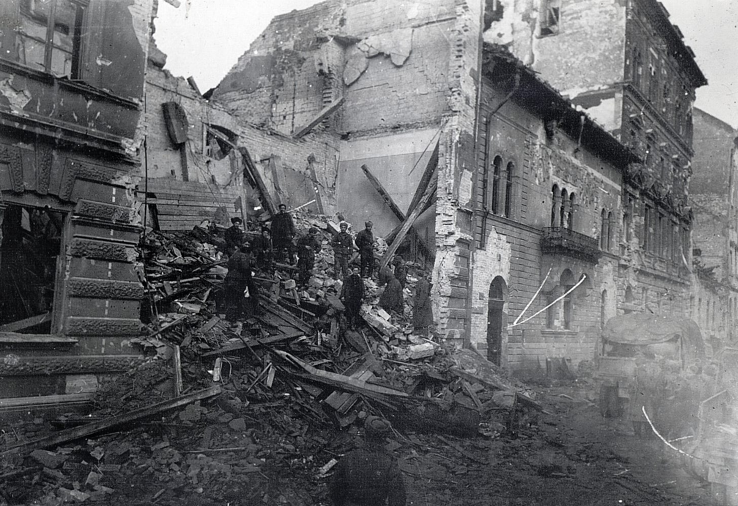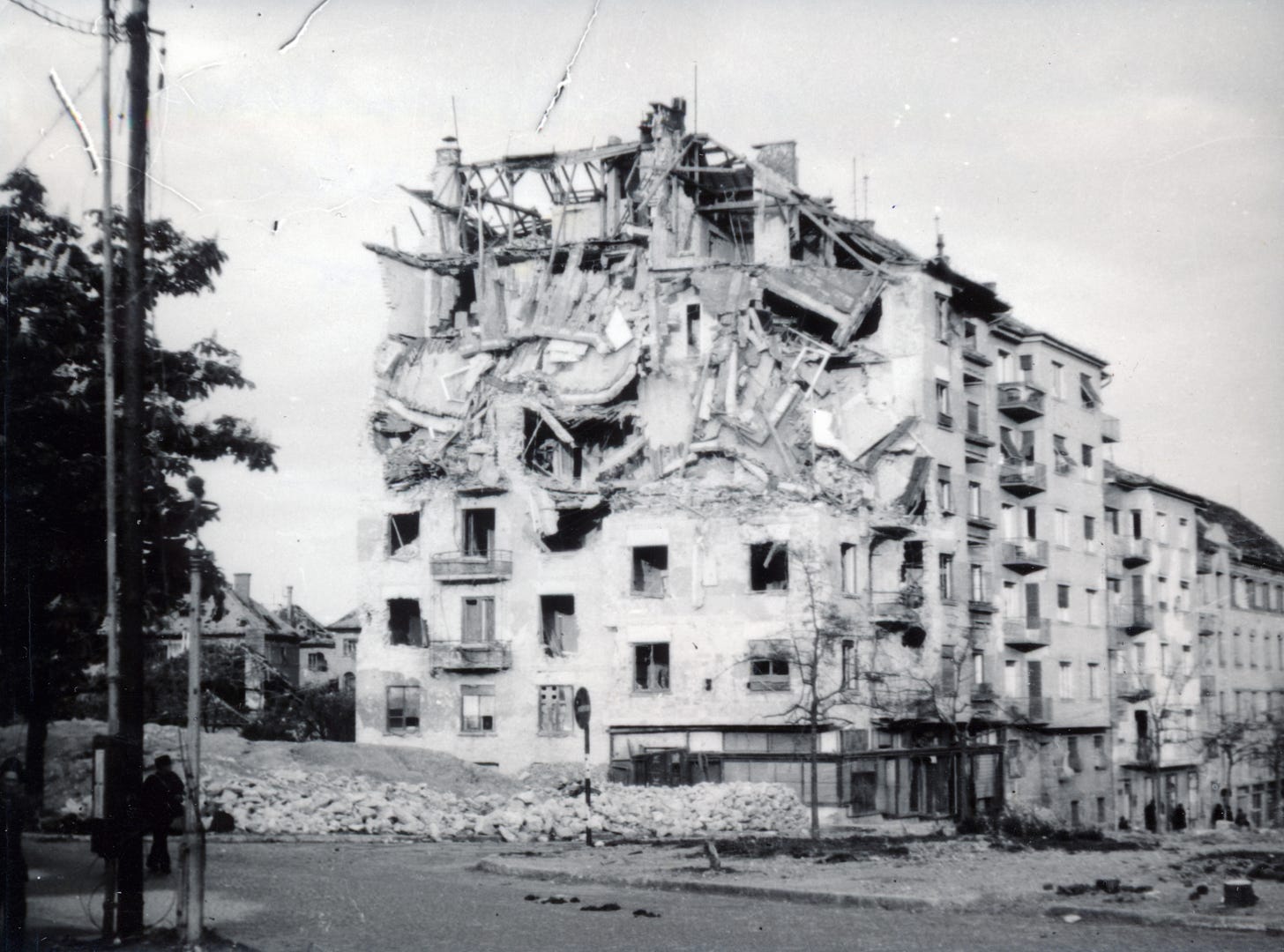 People who survived the siege talked about its end as “when we came up from the basement.” Amikor feljöttünk a pincéből. In the district where my mom spent those weeks, and also in the nearby district where we now live, this was after mid-February. The pictures that we have show the result of those endless weeks early in 1945. Of the process of the destruction: the siege itself, there are hardly any photos.